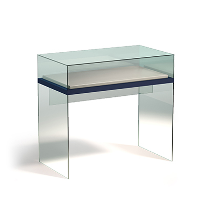 Выполнена в пылезащищенном исполнении; Колпак изготовлен по УФО-технологии из 8 мм бронированного Float-стекла с УФ-фильтром герметично вклеен в алюминиевый профиль и плотно прилегает к полику; В профиль колпака установлен замок повышенной секретности; Колпак имеет специальные газлифты облегчающие открывание и фиксирующие его в открытом положении; Полик из МДФ обтянут льняной тканью; Тумба выполнена из МДФ и имеет четыре металлические регулируемые опоры; В тумбе расположены три ящика полного выдвижения с дугообразными ручками на лицевой панели; Цвет окраса профиля колпака и металлического каркаса подбирается по каталогу RAL Classic; Цвет панелей МДФ подбирается по каталогу RAL Classic или каталогу листовых материалов;