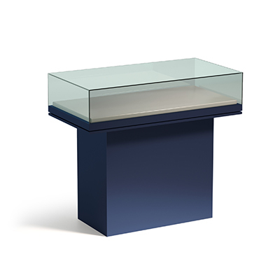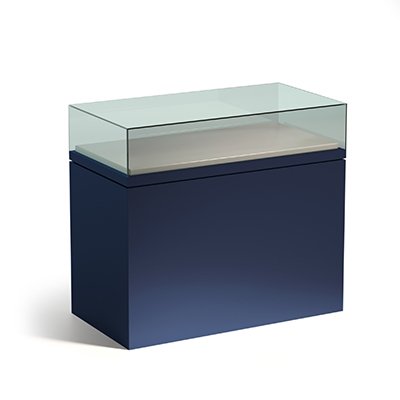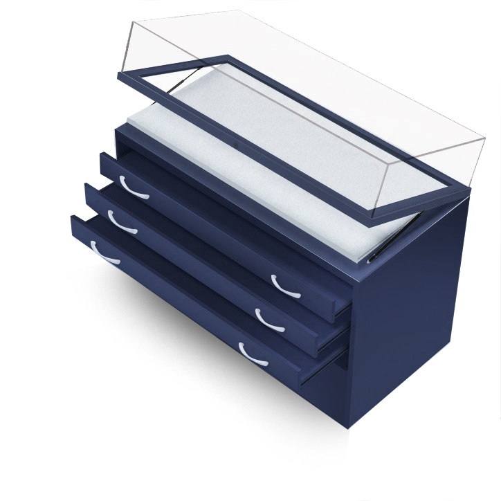 Горизонтальная витрина на тумбе с ящиками полного выдвижения и прямым колпаком